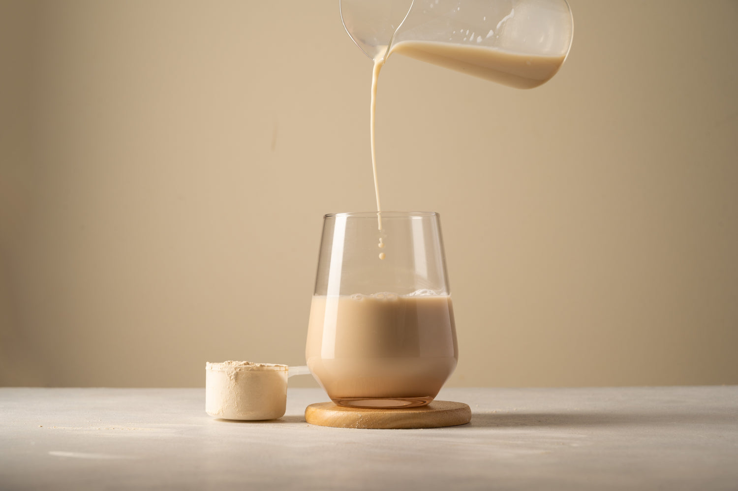 Versez 3 ou 4 scoops avec au moins 300ml de lait ou boisson végétale.