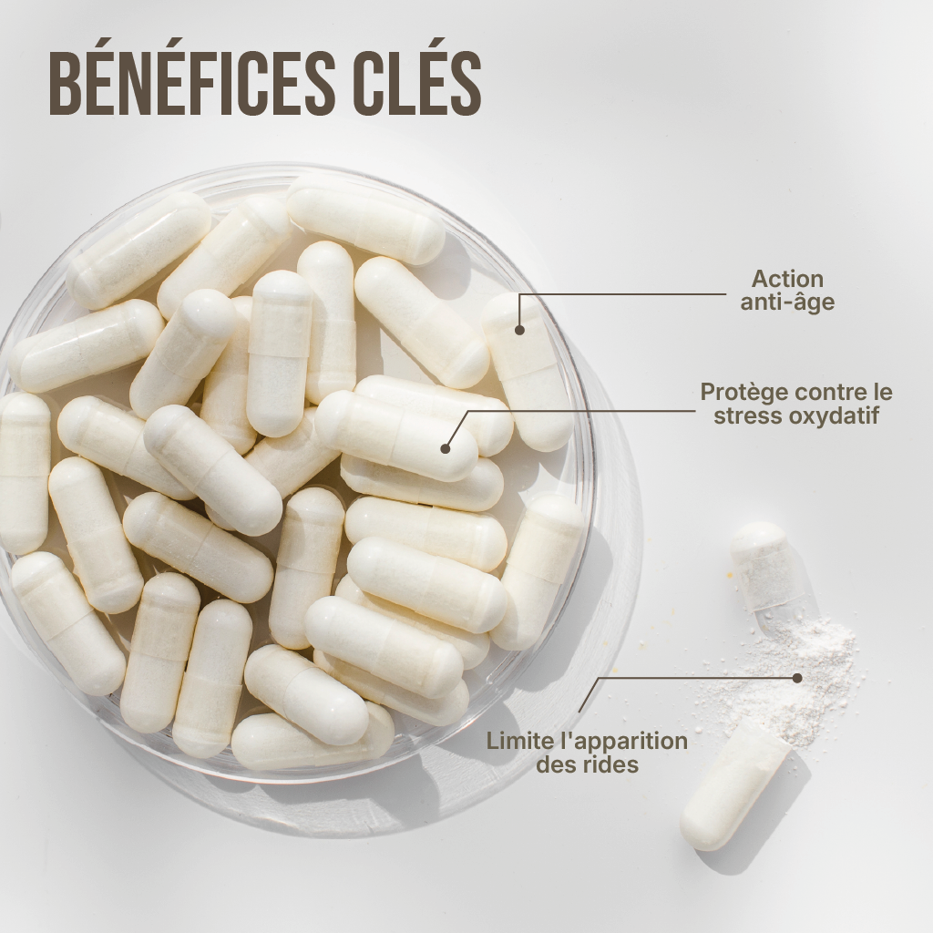 Tous les bienfaits du collagène Type 1 en version marine : la forme hydrolysée confère au collagène marin une biodisponibilité optimale.