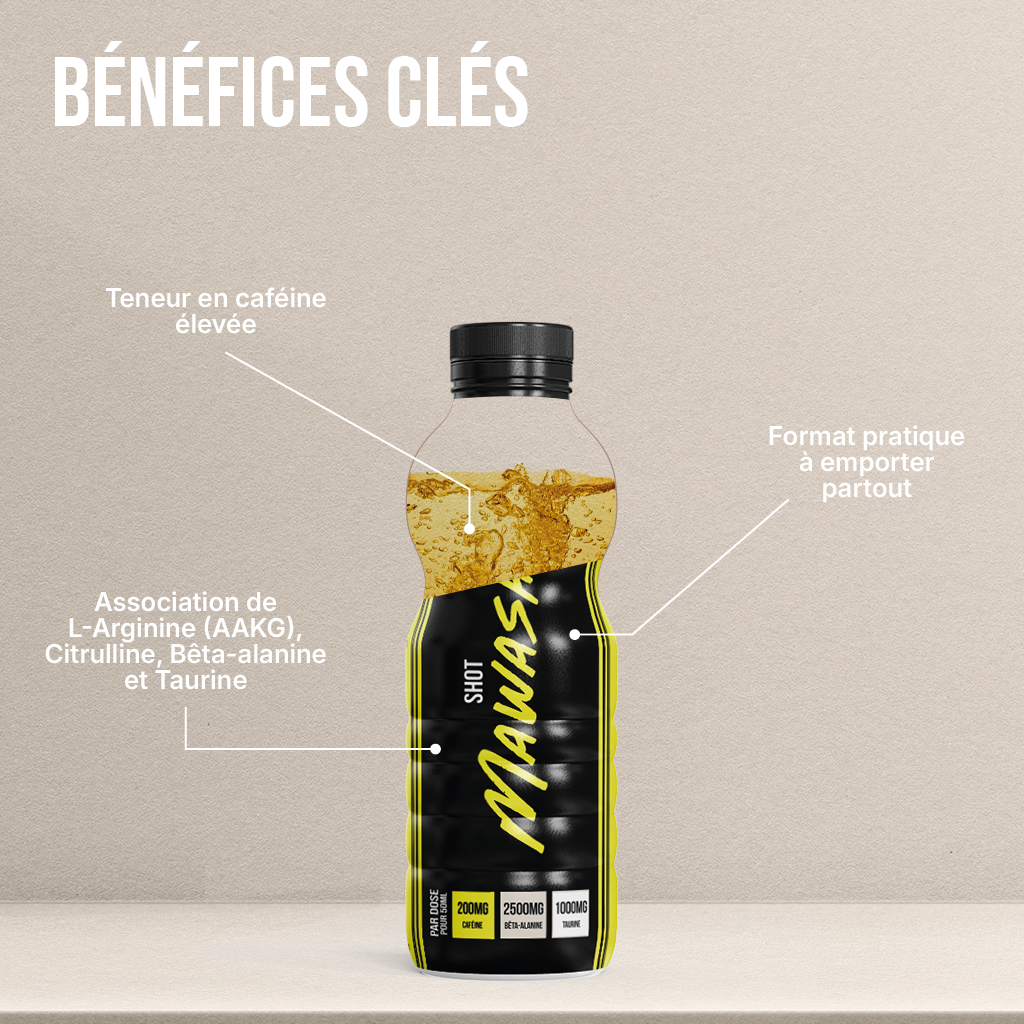 Eau, bêta-alanine, taurine, AAKG (alpha-cétoglutarate de L-Arginine), malate de citrulline, caféine, régulateur d'acidité : acide citrique, inosine, arômes, édulcorants : sucralose, acésulfame K, néotame, conservateurs : sodium benzoate, sorbate de potassium, maltodextrine.