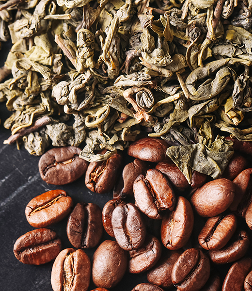 Caféine anhydre, Extrait de thé vert titré à 30% d’EGCG, Griffonia simplicifolia titré à 30% de 5-HTP, Extrait de café vert titré à 36% d’acide chlorogénique (type Svetol©).